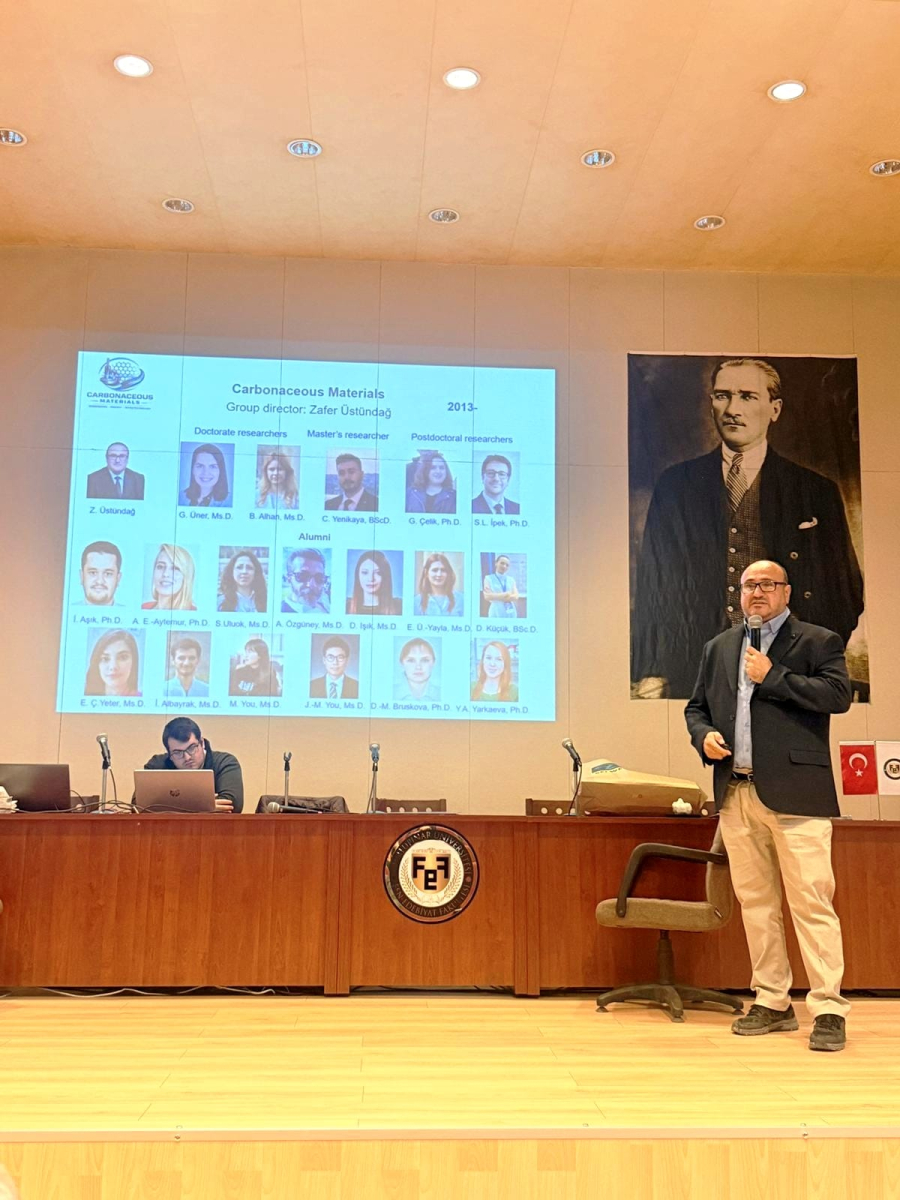 Etkinlik kapsamında ayrıca Kimya Bölüm Başkanı Prof. Dr. Zafer Üstündağ, “Karbon Malzemeler” başlıklı sunumuyla karbon temelli malzemelerin yapısı, kullanım alanları ve teknolojideki önemine değindi. Karbonun nanoteknoloji ve ileri malzeme bilimindeki rolü üzerine yapılan değerlendirmeler, katılımcılar tarafından ilgiyle takip edildi.