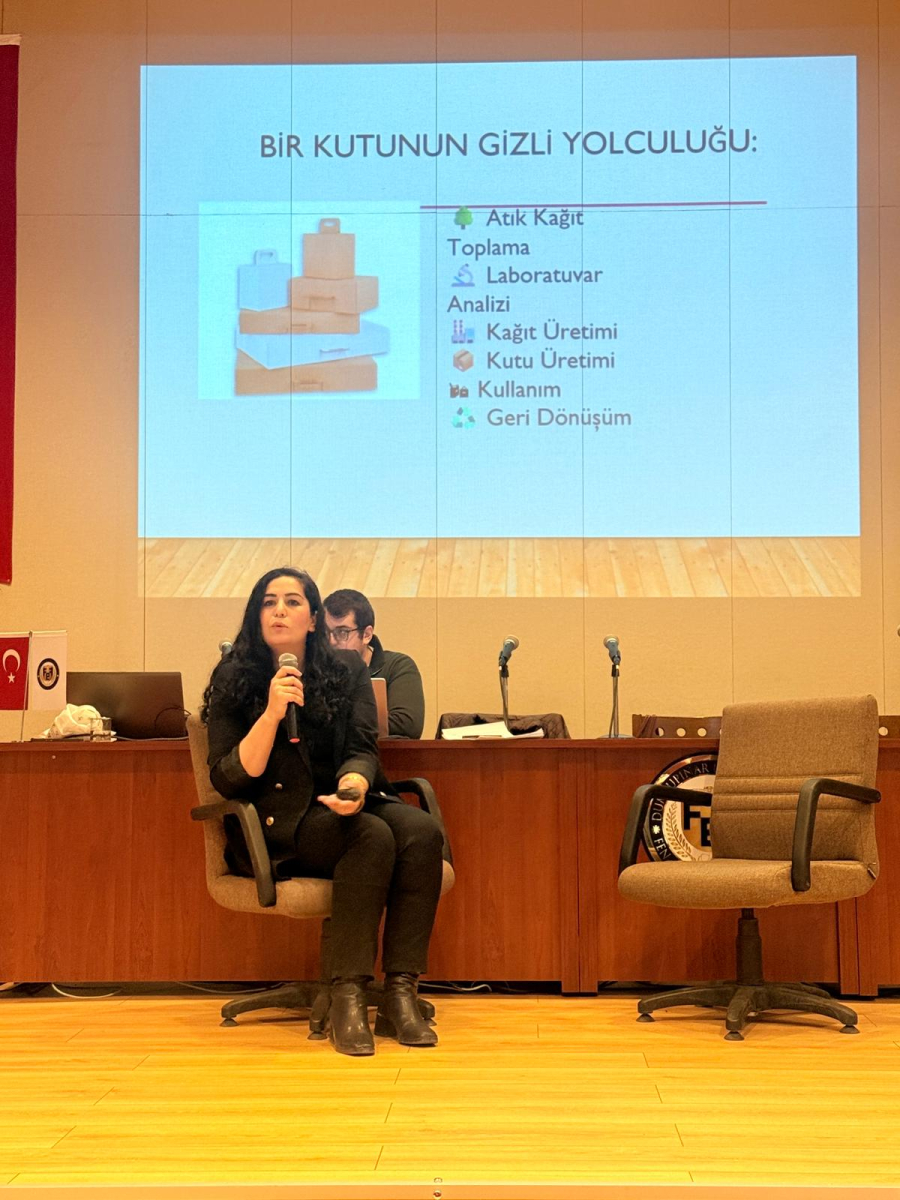 Etkinliğin ilk konuşmacılarından Ar-Ge ve Kalite Müdürü İlknur Kasımoğlu Dede, “Bir Kutunun Yolculuğu: Kağıt Ambalaj Sektörü” başlıklı sunumunda, kağıt ve ambalaj üretim süreçlerini sürdürülebilirlik perspektifinde değerlendirdi. Sunumda, atık kağıtların geri dönüşüm sürecinden başlayarak yeniden üretime kazandırılmasına kadar geçen aşamalar detaylı şekilde ele alındı. Ayrıca kimyacıların; proses yönetimi, kalite kontrol, çevre yönetimi ve Ar-Ge alanlarındaki kritik rolüne dikkat çekilerek, sürdürülebilirlik ve karbon yönetimi konularının gelecekteki önemi vurgulandı.
